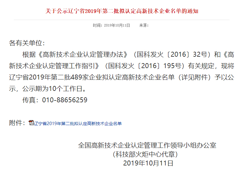 我公司進(jìn)入遼寧省第二批擬認(rèn)定高新技術(shù)企業(yè)名單 鏈接地址:http://www.innocom.gov.cn/gxjsqyrdw/asdf/201910/cc05d3b27a87496f9a165b9f55742ff8.shtml