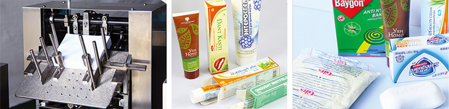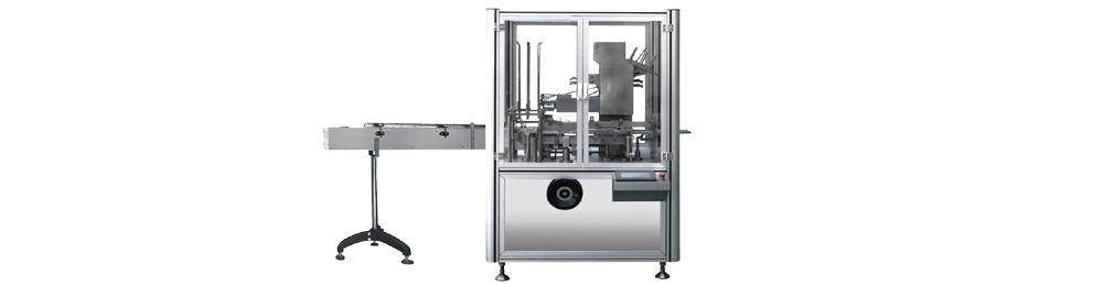 該機型適用于軟膏類物品(牙膏、藥膏)及軟包裝類物品的自動裝盒。其工作過程為牙膏或物品的傳送;藥品說明書的傳送(可進行1至4折的自動折疊);紙盒自動成形與傳送,將物料連帶折好的說明書同時裝入紙盒內;并自動完成打批號、兩端紙舌封口等繁雜額封裝過程(可配熱熔膠機)。